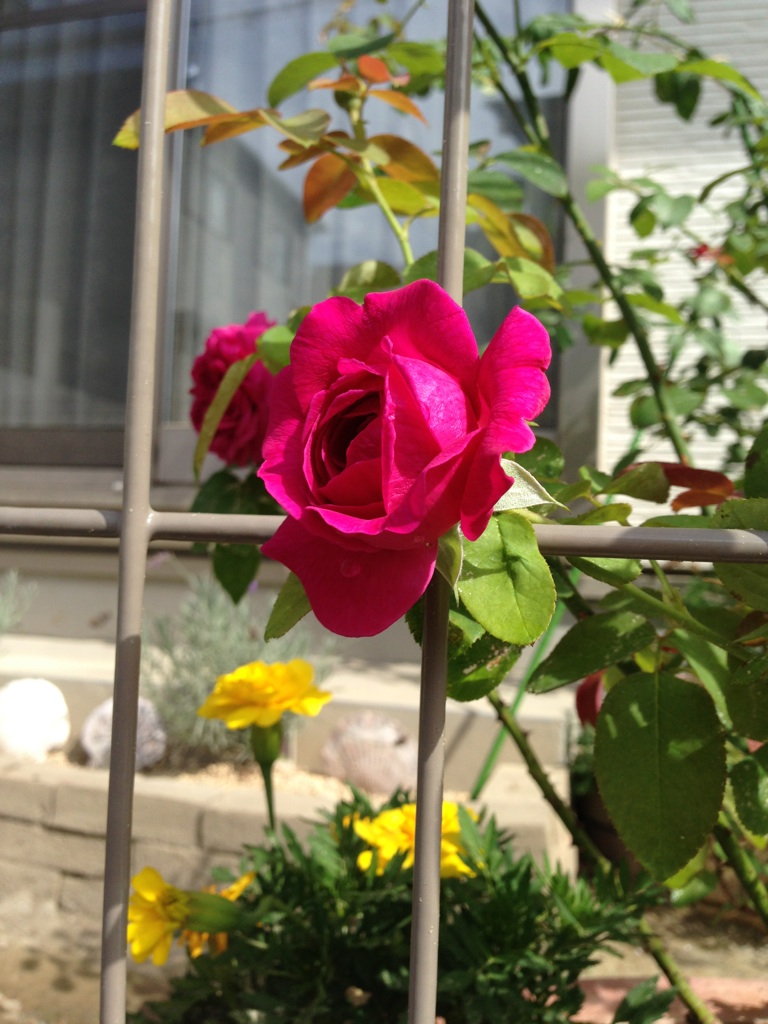 (ご主人は引越後、花なんか植えたりしていました。なんでも「イングリッシュ・ローズ」だそうで。そのうち一本は真っ赤なバラで、とってもよい香り。)